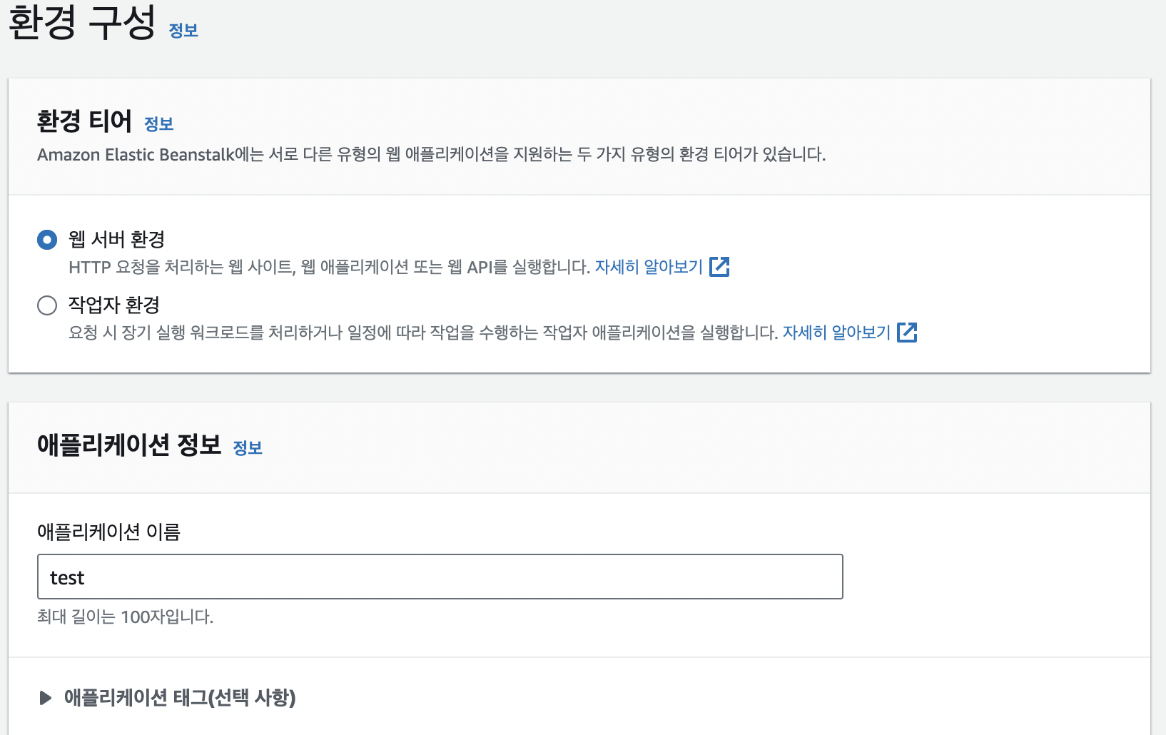 AWS 을 통한 Elastic Beanstalk 생성: