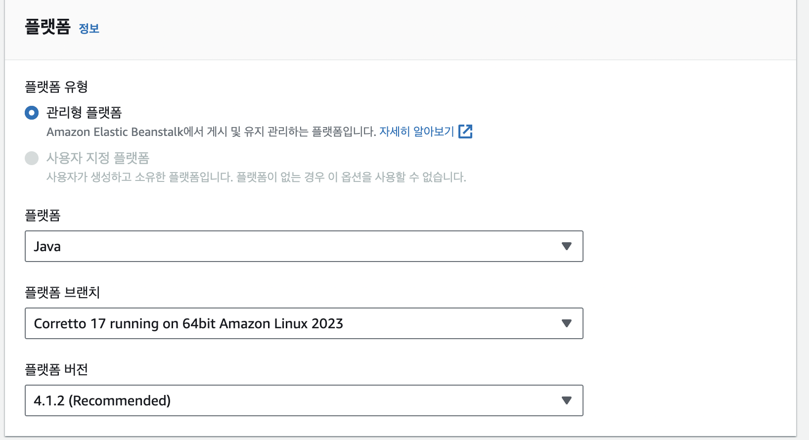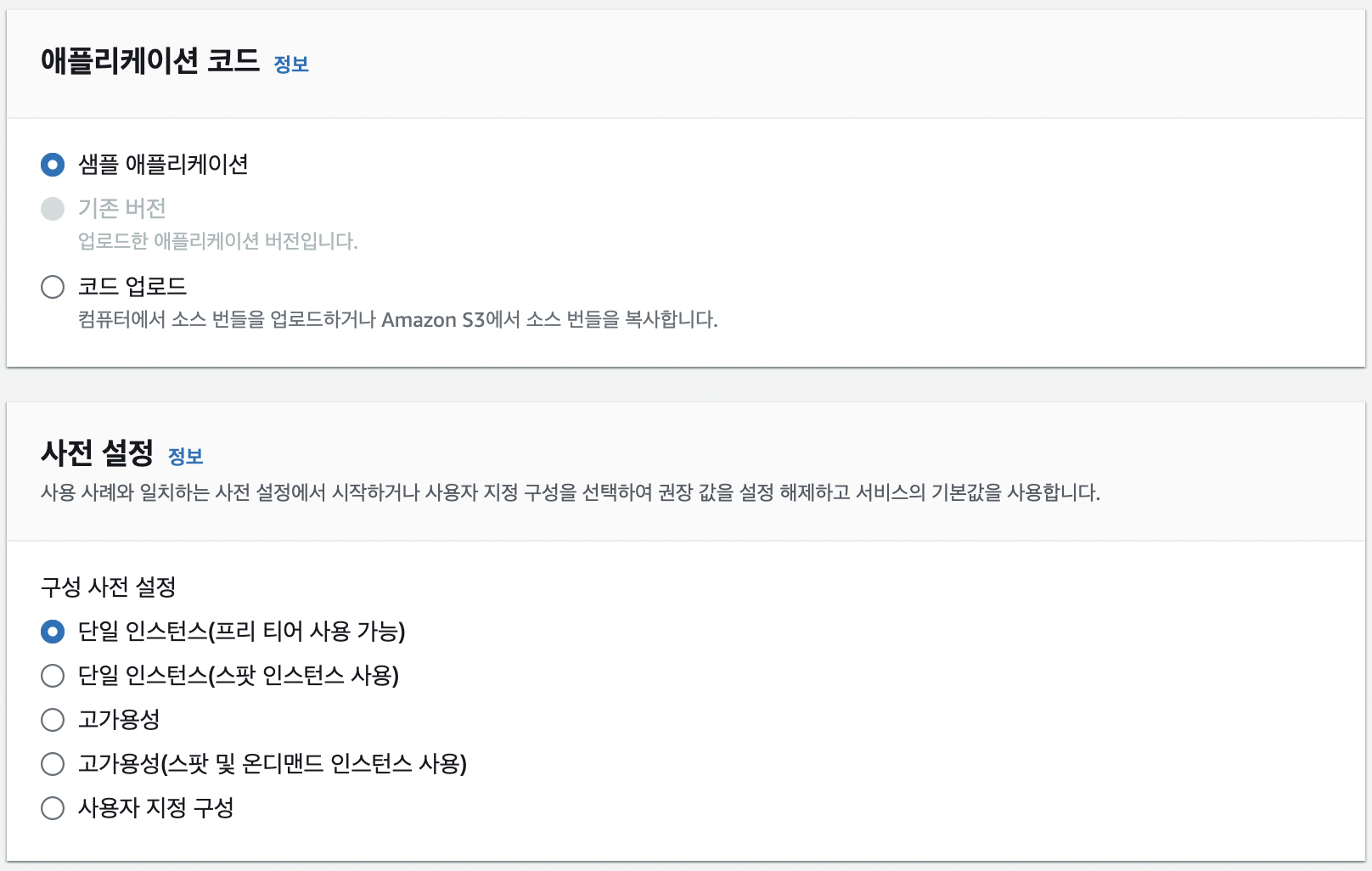 - Elastic Beanstalk는 다양한 구성 요소를 손쉽게 구성할 수 있도록 지원합니다. 데이터베이스, 환경 변수, 스케일링 정책 등을 설정할 수 있습니다.