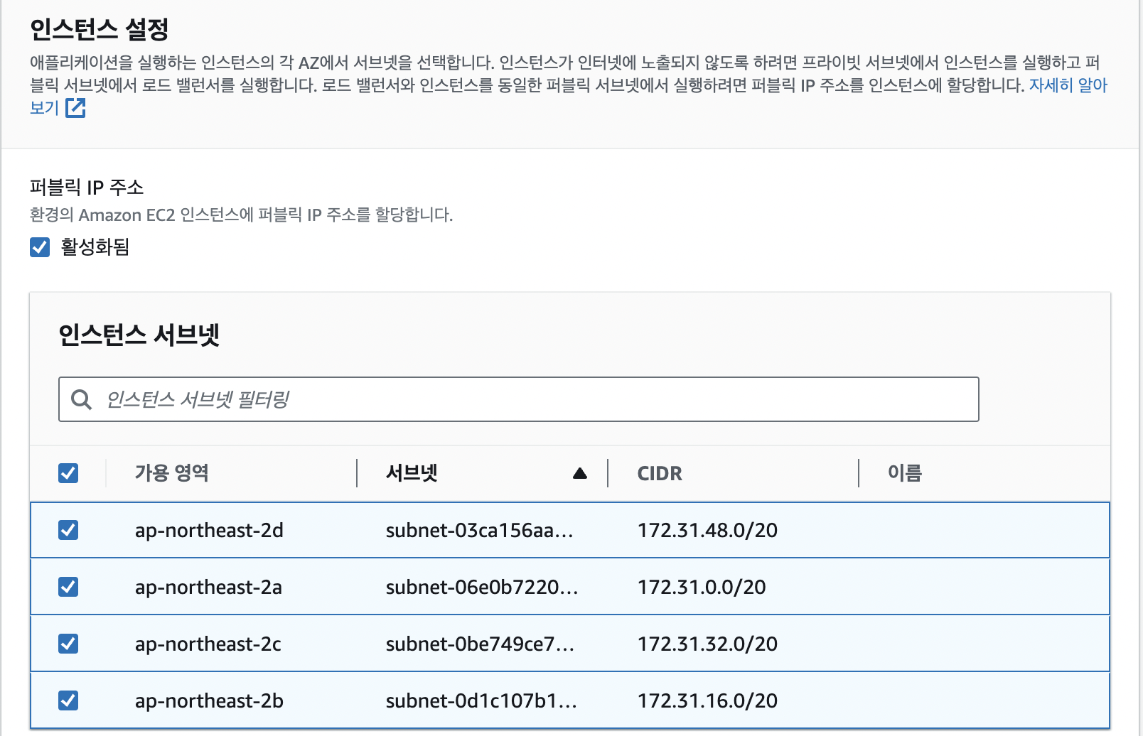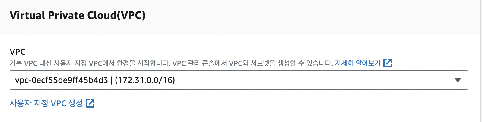- 선택지에 생성된 vpc 선택