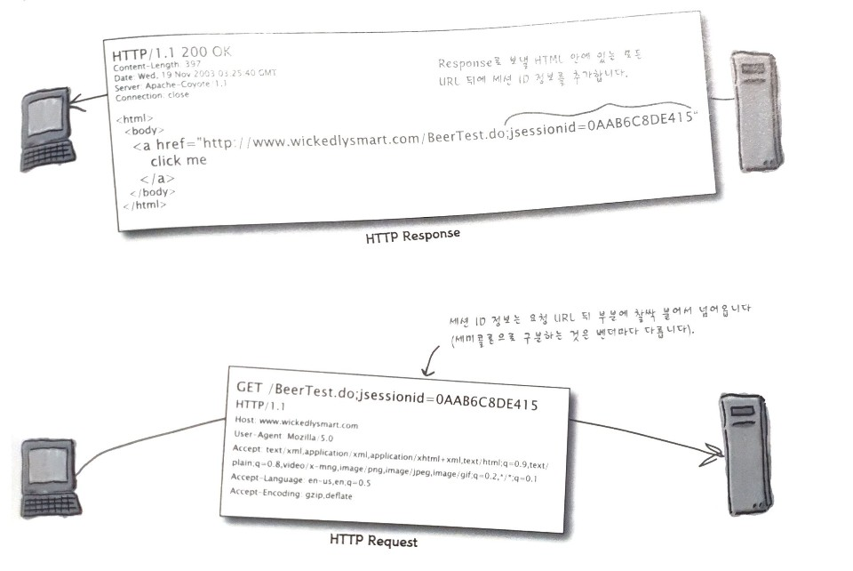 위 그림처럼 세션 ID을 URL에 더하여 사용합니다.