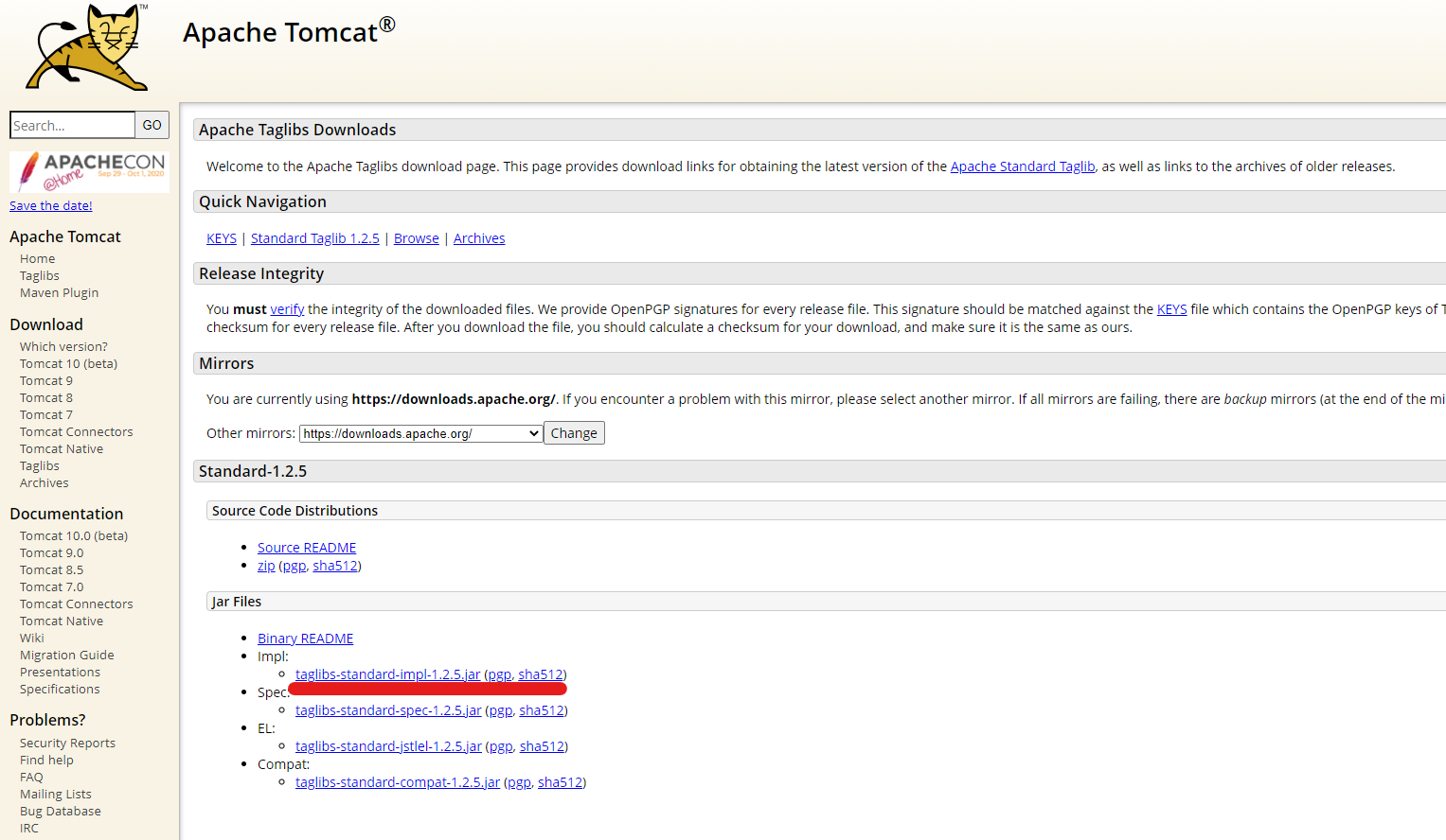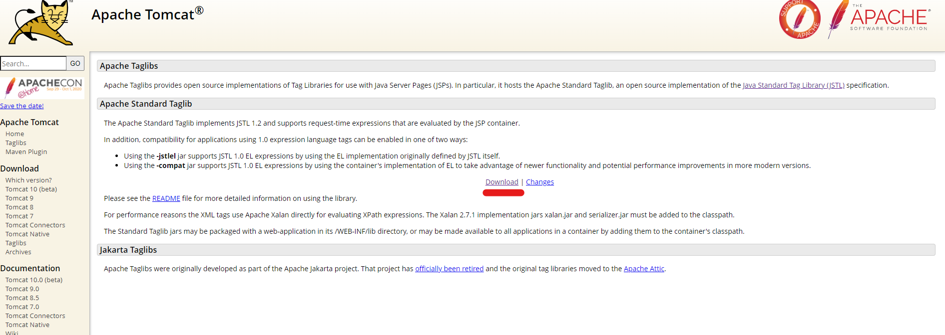 Welcome to the Apache Taglibs download page. This page provides download links for obtaining the latest version of the Apache Standard Taglib, as well as links to the archives of older releases. You must verify the integrity of the downloaded files. We pro