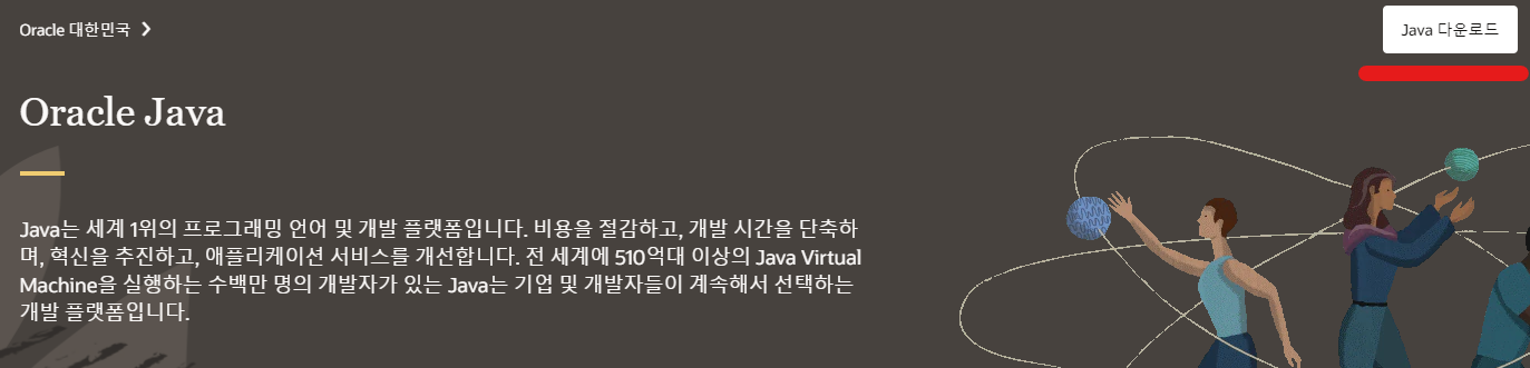 자바 메뉴를 클릭하여 들어오면 오른쪽 상단의 Java다운로드 버튼을 눌러 이동한다.