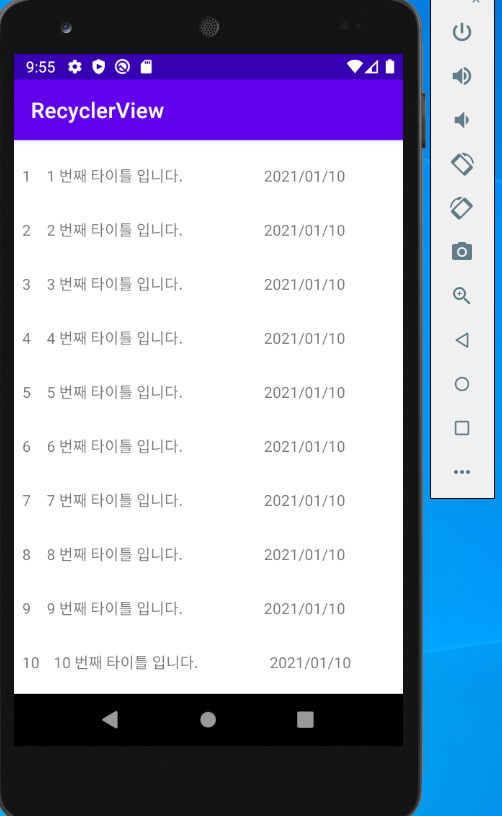 안녕하세요 이번 글에서는 리사이클 러뷰를 사용해보겠습니다.