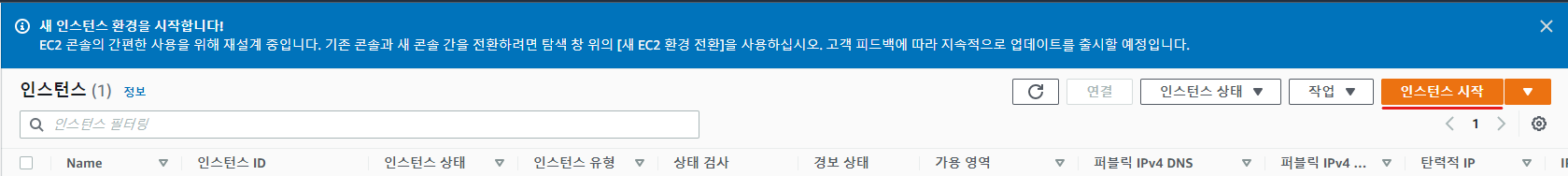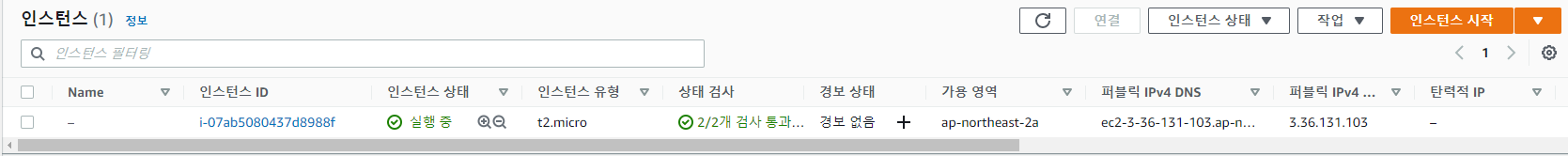 인스턴스 목록 화면으로 돌아가 보면 생성된 인스턴스를 확인할 수 있습니다.