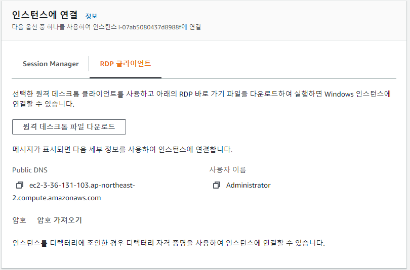 그다음 원격 데스크톱 파일 다운로드를 클릭하여 원격 접속을 위한 파일을 다운로드하여 줍시다.