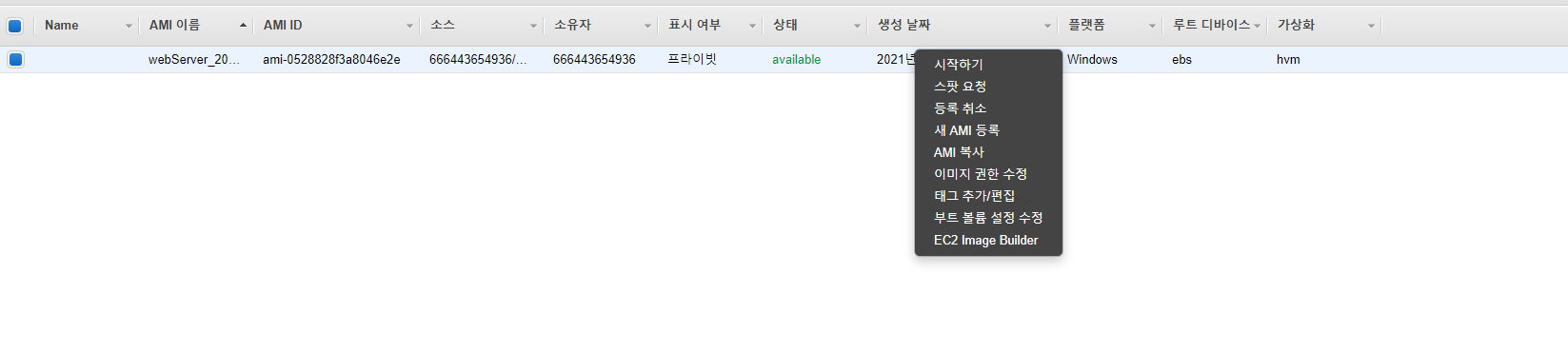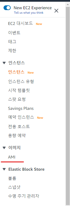 그다음 오른쪽 메뉴에서 AMI를 클릭하여 줍시다.