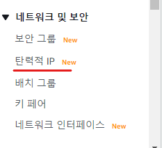 먼저 좌측 메뉴에서 [ 탄력적 IP ] 메뉴를 클릭하여 줍시다.