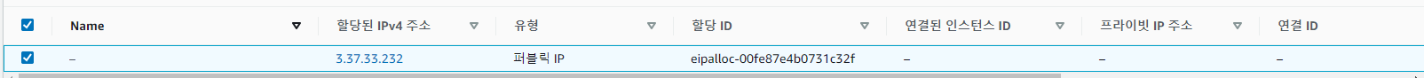 생성된 IP를 클릭하여 상세화면으로 이동하여 준 다음 탄력적 IP 주소 연결을 클릭하여 줍시다.