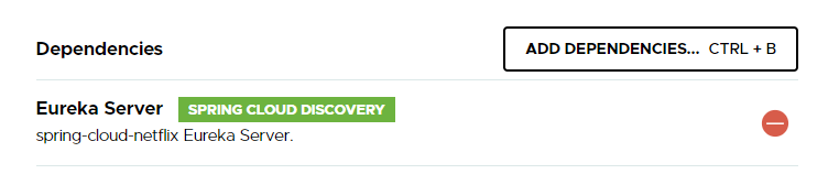 - Spring initializr 에서 프로젝트 생성시 디펜던시로 Eureka Server 를 추가하여 줍니다.