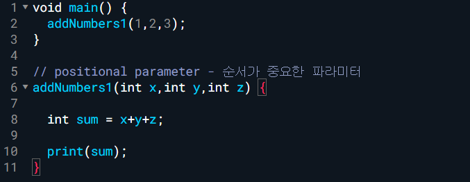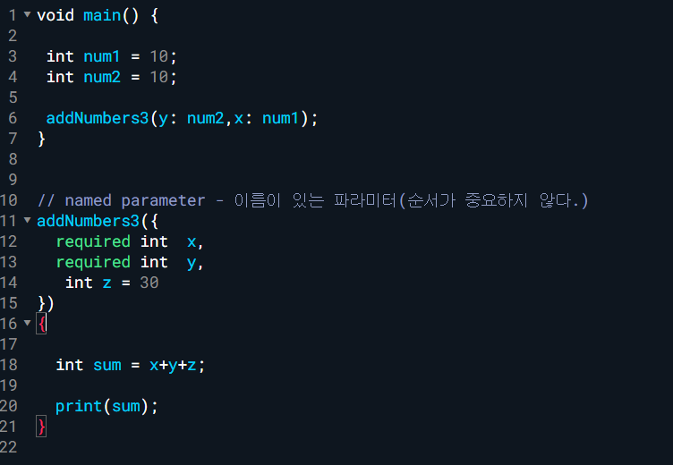 named parameter는 파라미터를 넘겨줄 때 미리 method에서 지정해 놓은 파라미터의 이름과 매치시켜서