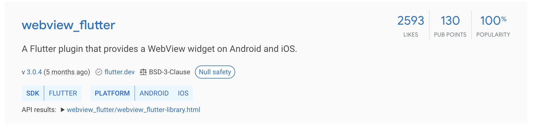 그다음 검색창에 webView를 검색한 뒤 아래 사진과 같은 검색 결과를 선택하여 줍시다 ( like 등은 변동될 수 있습니다. )