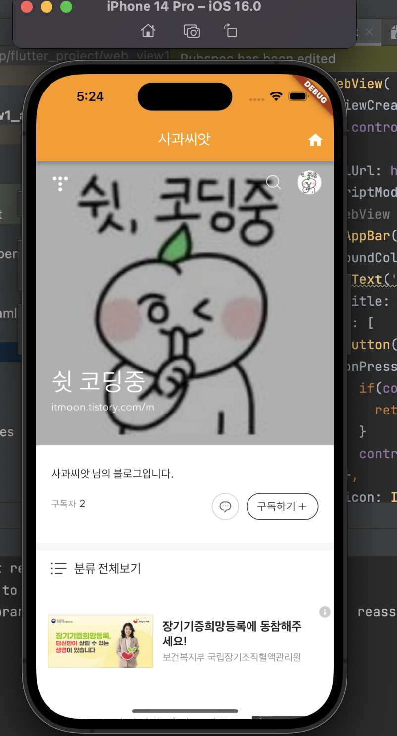 정상적으로 WebView 가 실행되는 것을 확인할 수 있습니다.